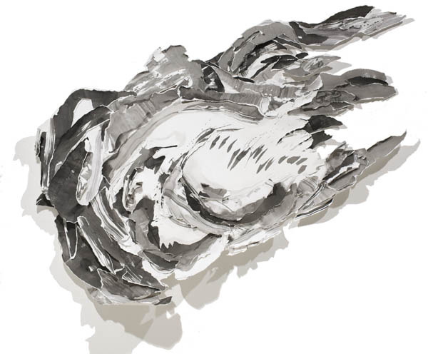 Katherine Nemanich, Undeterred, 2015. Sumi ink, folded and torn watercolor paper and Bristol board, on Stonehenge paper, 50 x 83 x 2 1/2 in.