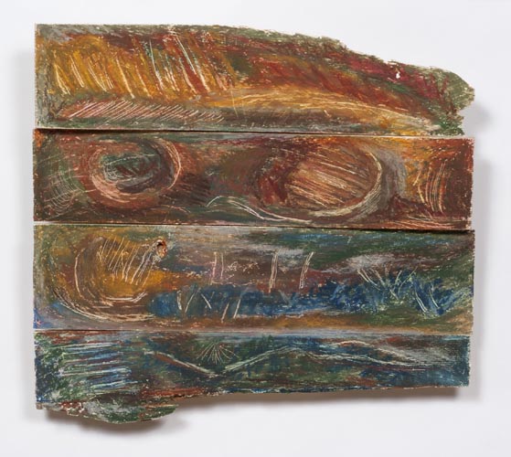 , 2011. Oil pastel on wood, 14 ½ x 16 x 1 in.