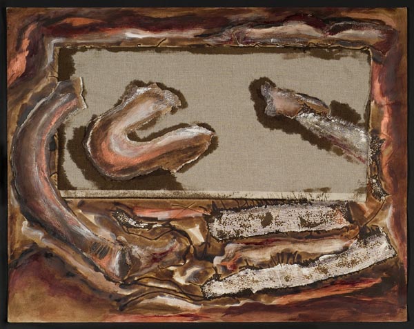Katherine Nemanich, Cavelight, 2007. Walnut ink, gouache, linen, acrylic, watercolor, bookbinders cloth on Bristol board, 19 x 24 in.