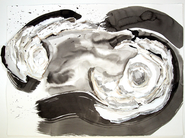Katherine Nemanich, Sound, 2014. Sumi ink, torn and folded Canson watercolor paper, acrylic ink, on Fabriano Artistico, 22 ½ x 30 x 7/8 in.