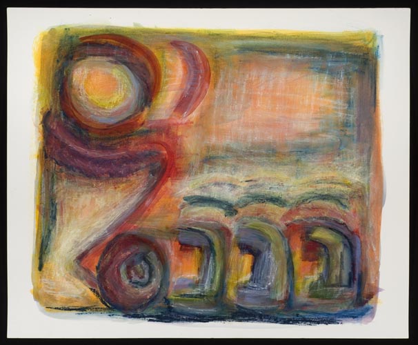 Katherine Nemanich, Escapade, 2005. Watercolor, water crayon, acrylic, oil pastel on Bristol board, 17 x 14 in.